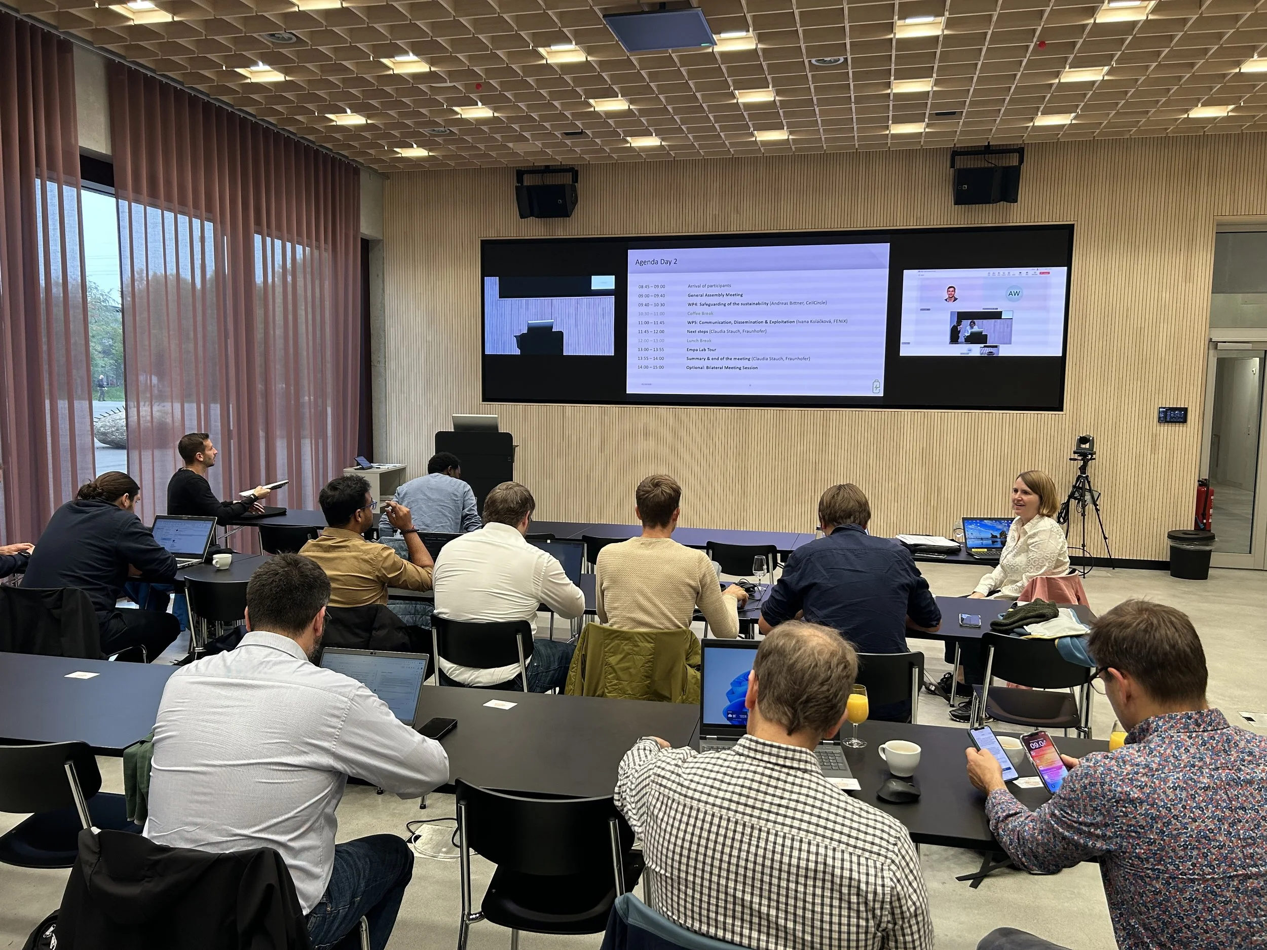 The first day was dedicated to reviewing the progress of each work package and engaging with the project’s Advisory Board. The consortium also welcomed Nora Bartolomé from the Swiss Battery Technology Center, part of the Swiss Innovation Park, who shared insights on bridging the gap between academia and industry.